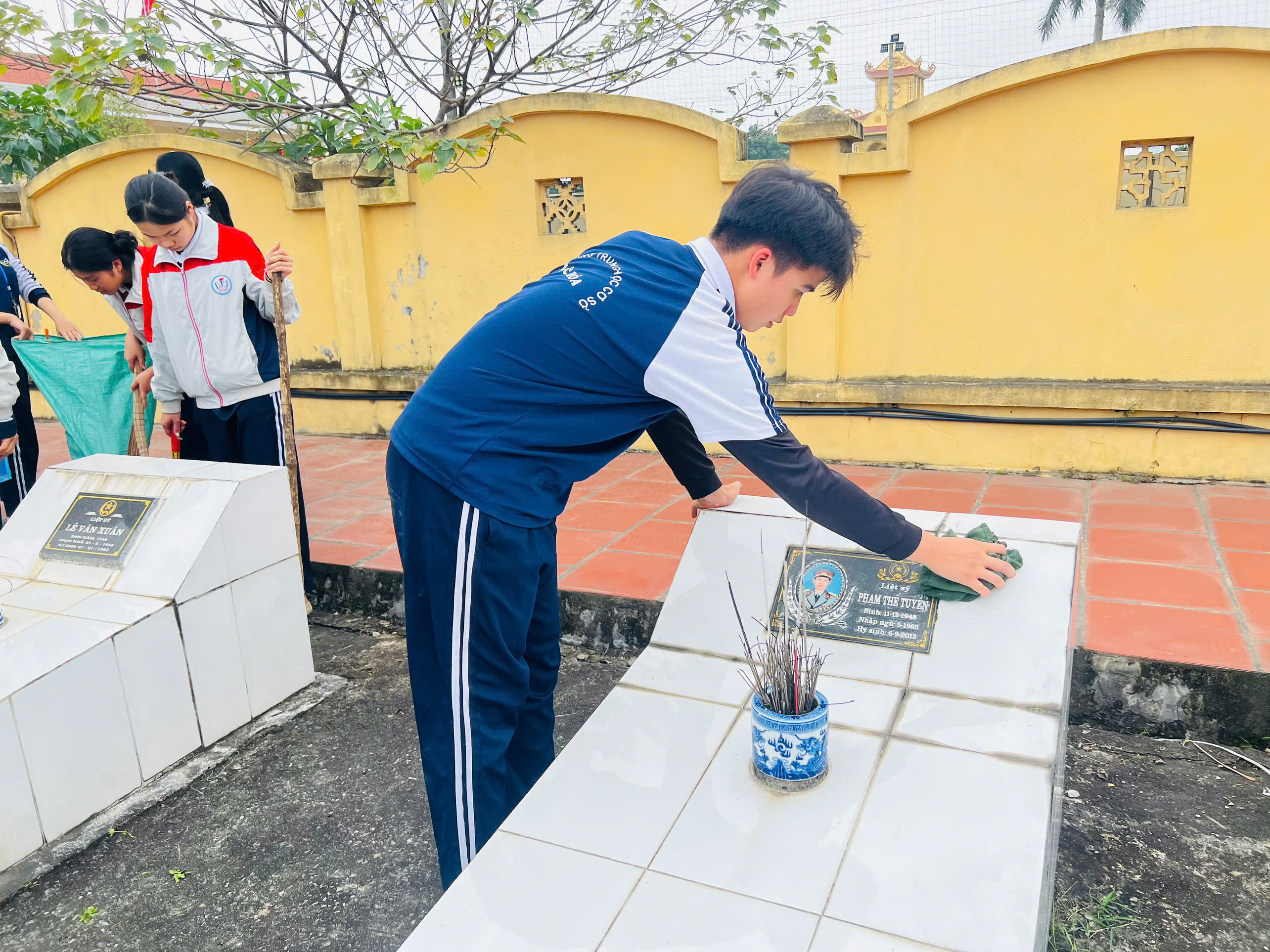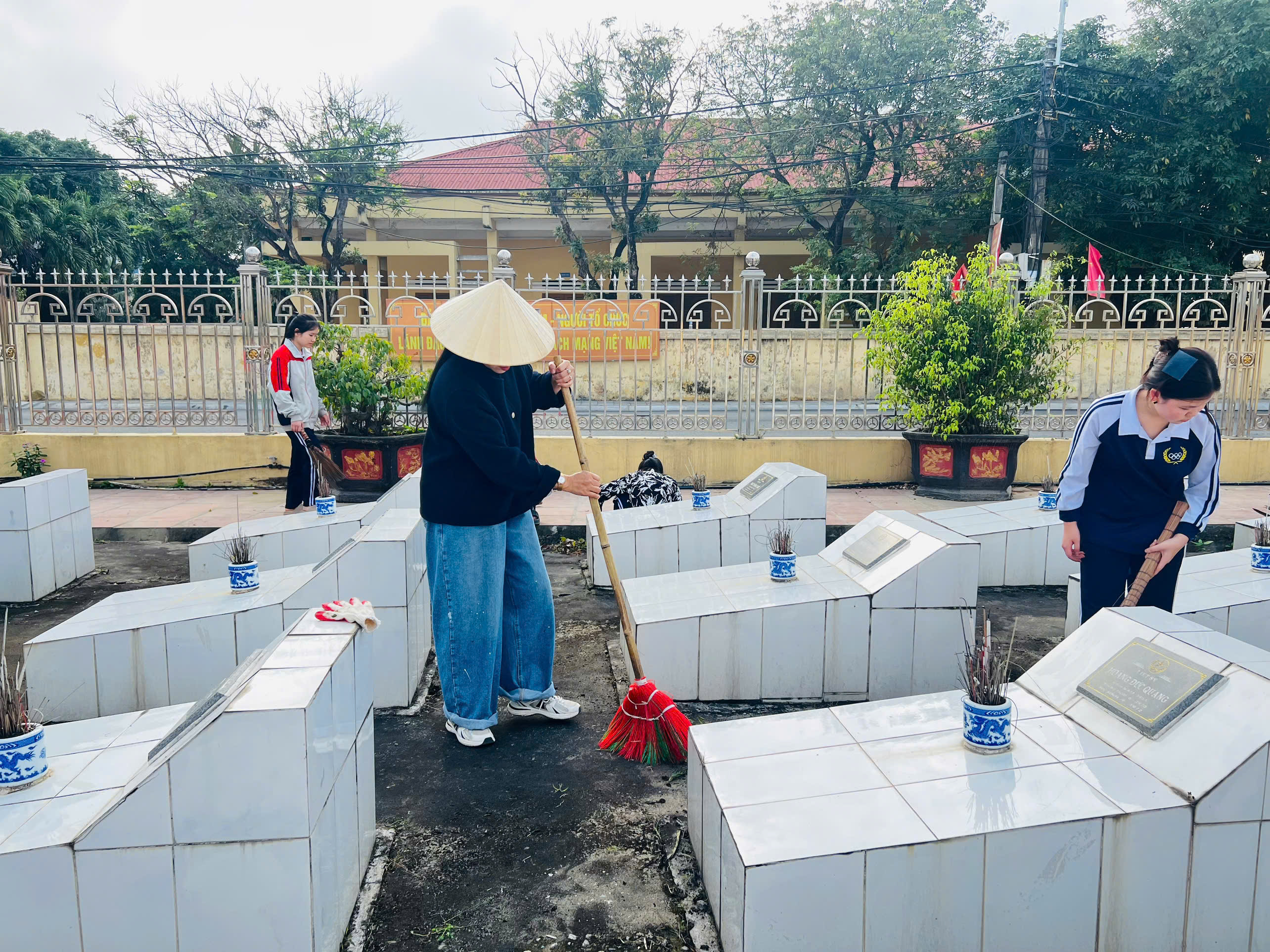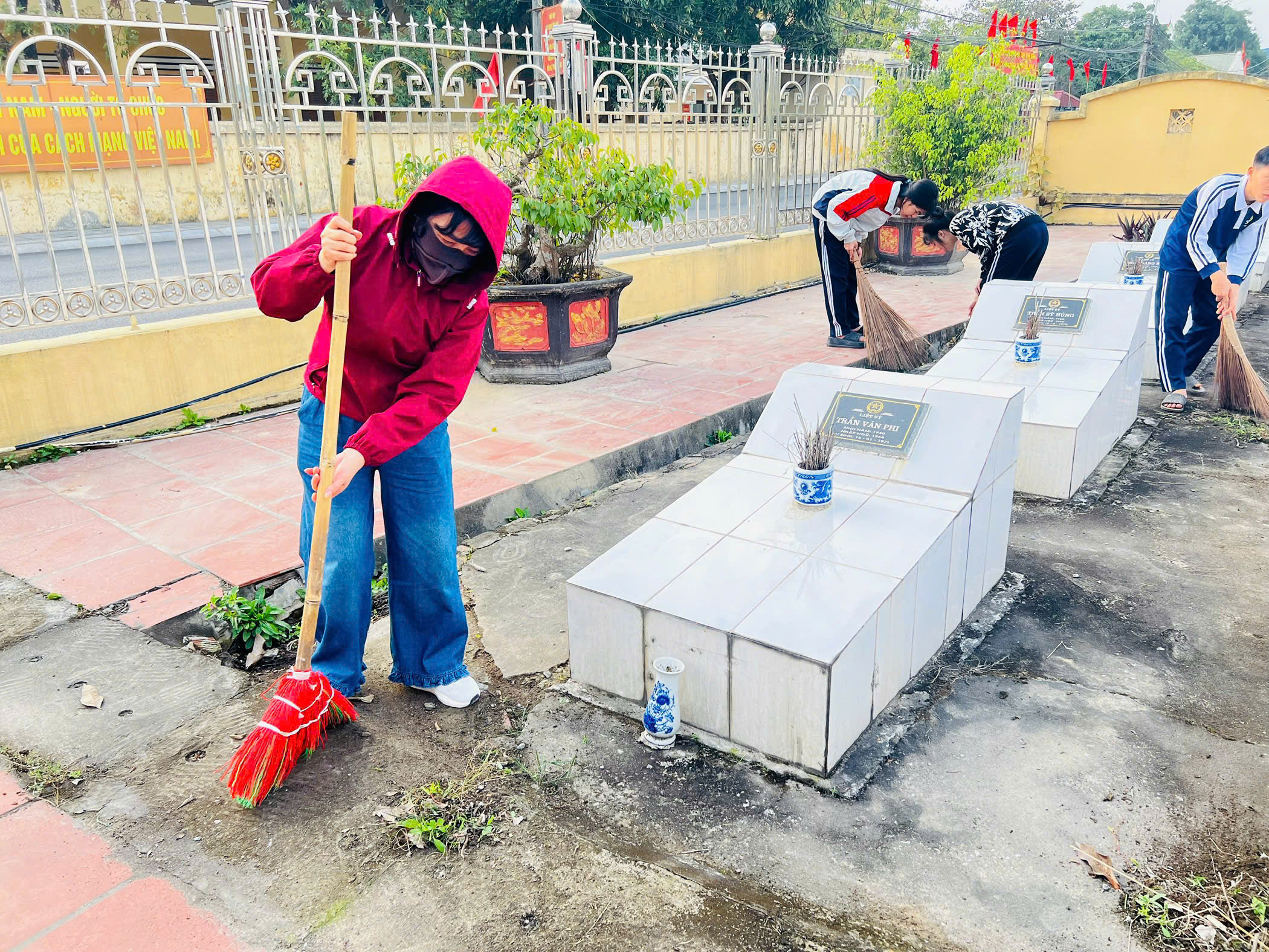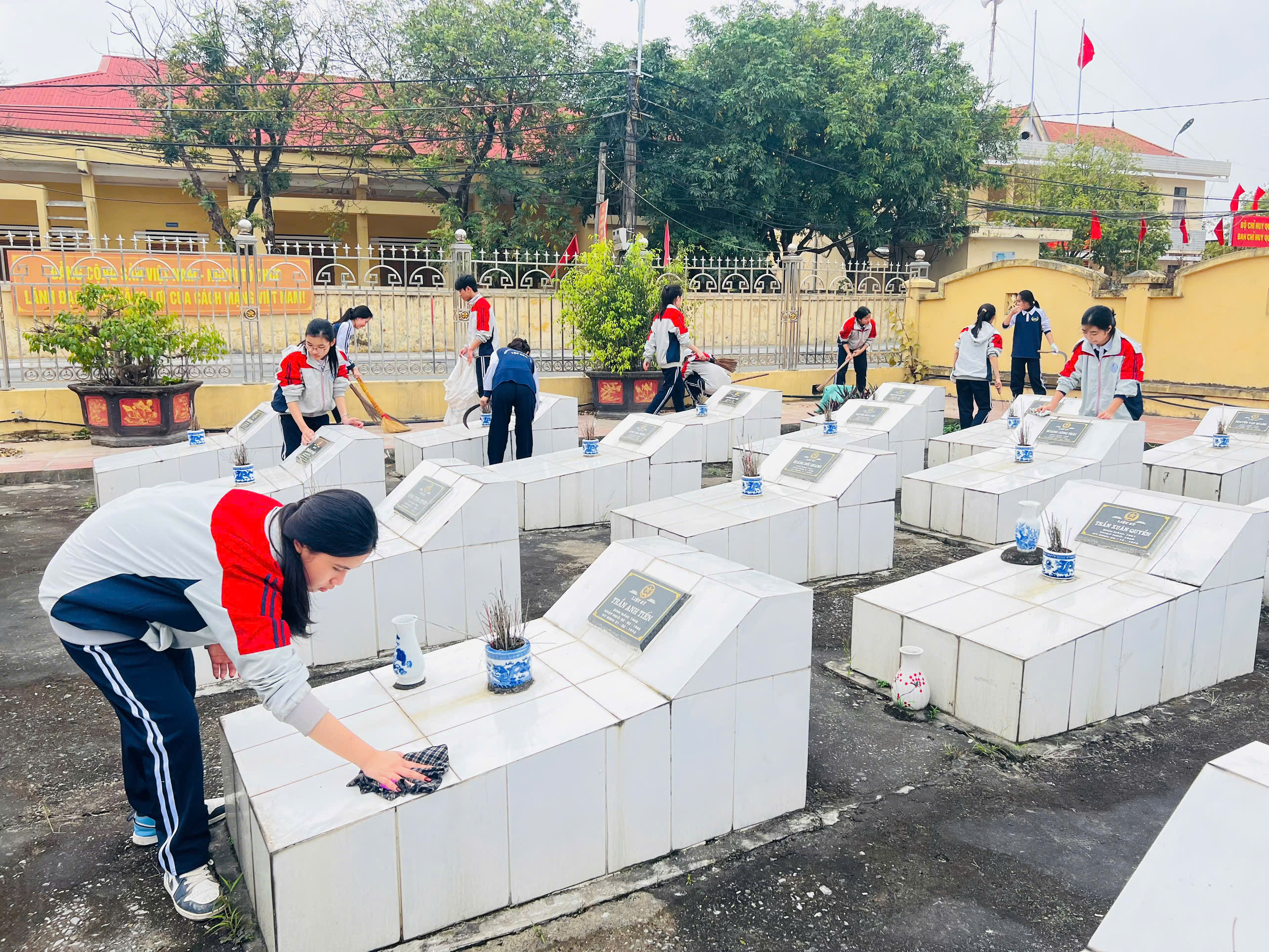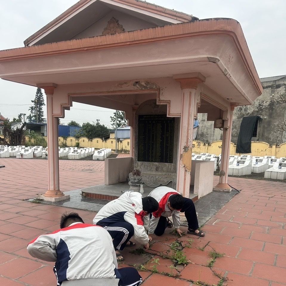 Trong không khí trang nghiêm và đầy trách nhiệm, các đội viên đã tham gia hoạt động vệ sinh, chăm sóc khu nghĩa trang liệt sĩ địa phương. Tại đây, các em cùng nhau lau dọn bia mộ, quét dọn khuôn viên, nhổ cỏ, chỉnh trang các phần mộ liệt sĩ. Những việc làm tuy nhỏ nhưng thể hiện tấm lòng tri ân sâu sắc của thế hệ trẻ đối với các anh hùng liệt sĩ – những người đã hy sinh vì độc lập, tự do của Tổ quốc.